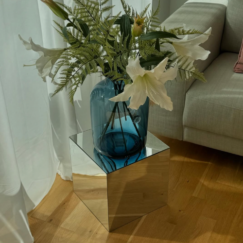 Med vores firkantede spejlborde kan du skabe dit helt eget unikke design. Deres alsidige form gør det muligt at kombinere dem på utallige måder, så du kan tilpasse dem præcis til dit rum og din stil. Uanset om du ønsker et minimalistisk look eller vil skabe en mere kompleks opsætning, giver vores spejlborde dig friheden til at designe dit hjem med din egen kreativitet i centrum. Spejlbordene måler 30 cm x 30 cm og vejer 1 kg.